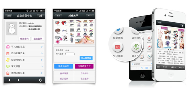 3、会员积分:在《移动商城》的基础上,增加了会员管理、消息推送、积分商城、促销抽奖和电子会员卡等功能模块。